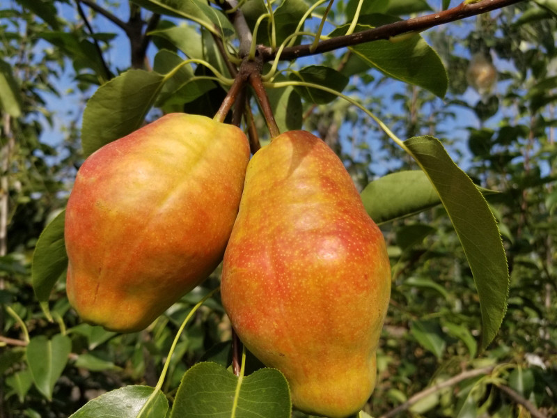 香梨杂交新品种,7月底成熟,果重250-400克,着色鲜红,含糖量15-18%,口感酥脆,特丰产。